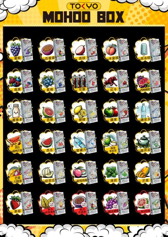 TOKYO MOHOO BOX 提供多達20多種口味選擇,特別針對不同使用者的需求,推出了涼版無涼版的水果與煙草口味,讓每一位使用者都能找到最適合自己的風味。